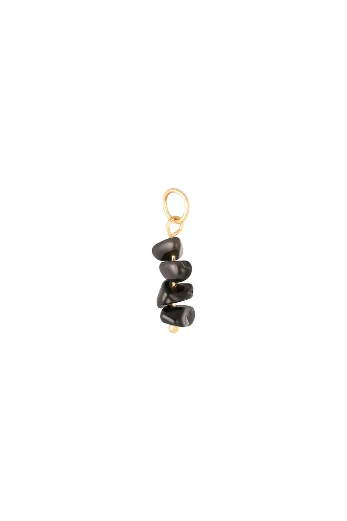 Bedel met zwarte natuursteentjes aan een gouden roestvrijstalen ringetje.