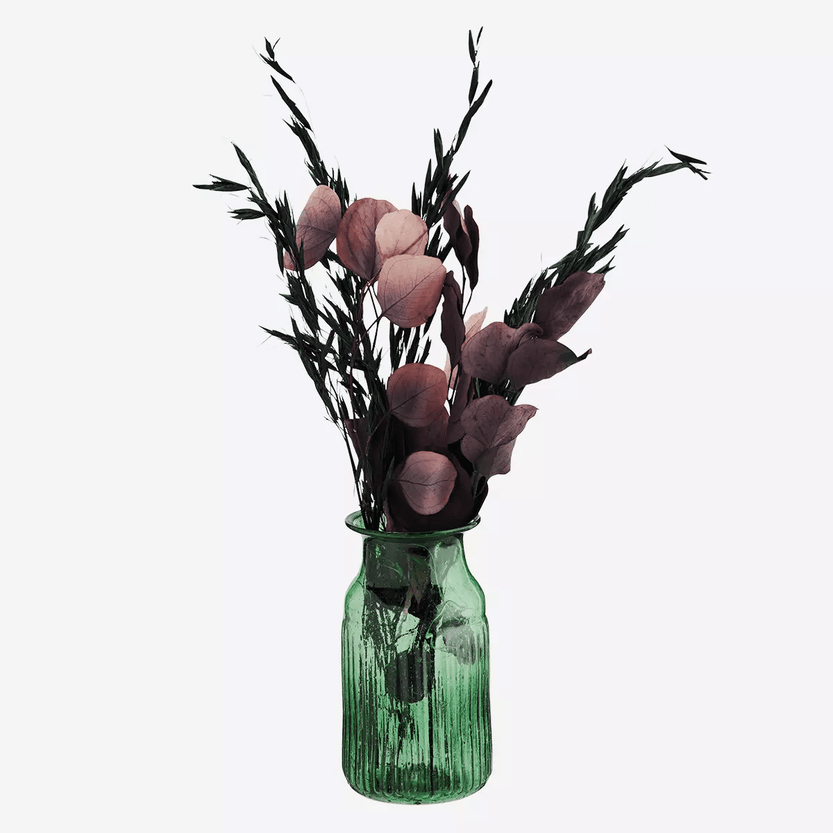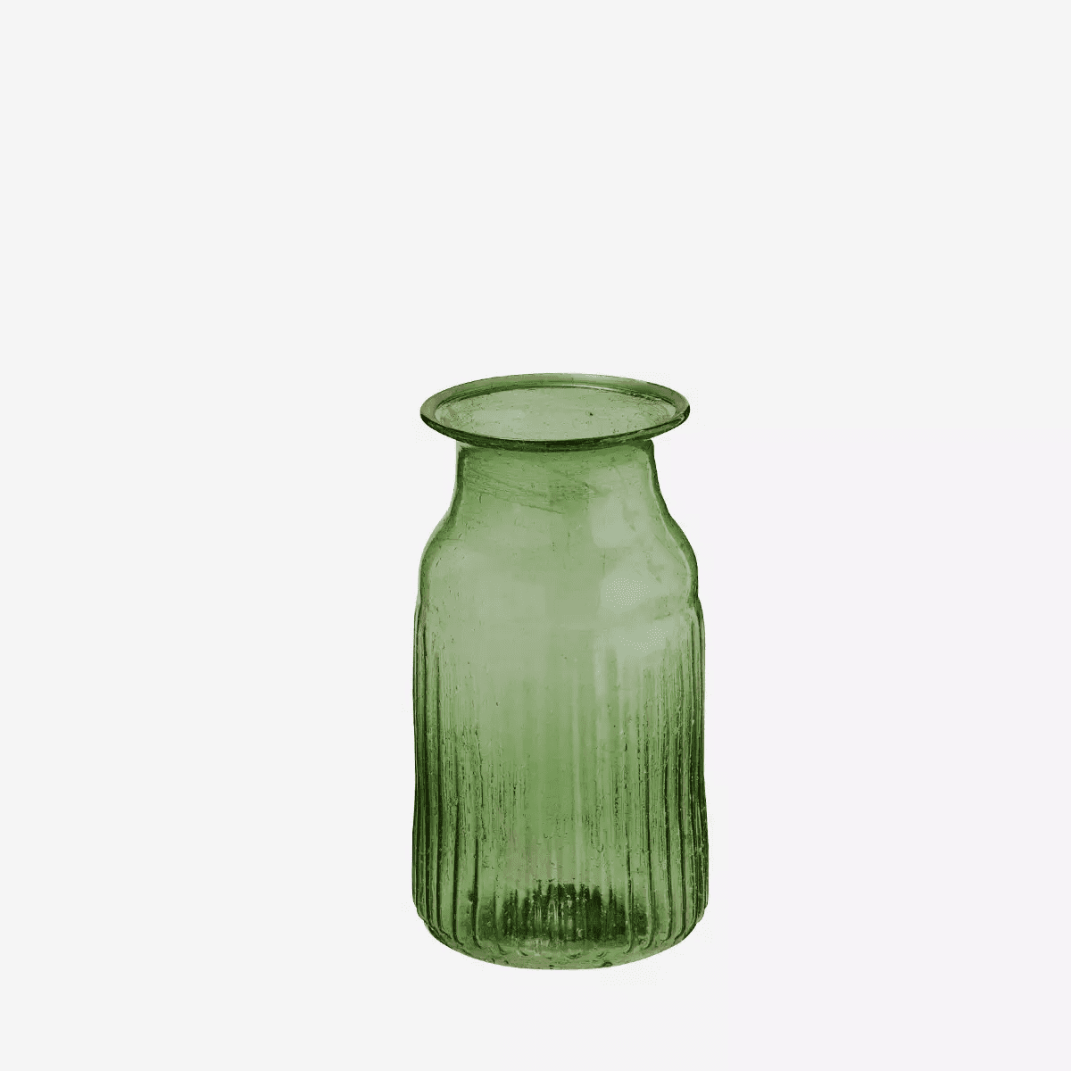Handgemaakt vaasje van gerecycled glas in de kleur groen. Mooi om 1 bloem, een takje of droogbloemen in te zetten.